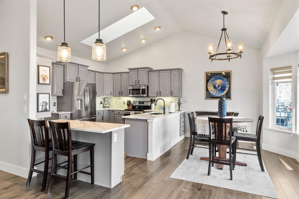 Beautifully updated 4-bedroom, 3.5-bath ranch-style Heights home on an expansive, scenic lot and overlooking Lake Elmo, with over 3,200 sq. ft. of living space. Thoughtfully upgraded from floor to ceiling with all new paint and flooring, including hardwood, tile, and carpet. The updated kitchen is the heart of the home, with quartz countertops, beautiful tile backsplash, modern hardware, and all new appliances - perfect for gatherings. A new roof and skylights fill the home with natural light and peace of mind, and all bathrooms are freshly renovated, including a spa-like primary suite. Enjoy a thoughtful main-level laundry, a roomy walk-out basement, oversized 2 car garage, RV parking, and a maintenance-free deck ideal for summer nights. Nestled in a friendly neighborhood with scenic views, generous space, and extensive upgrades, this home offers comfort, charm, and exceptional value.