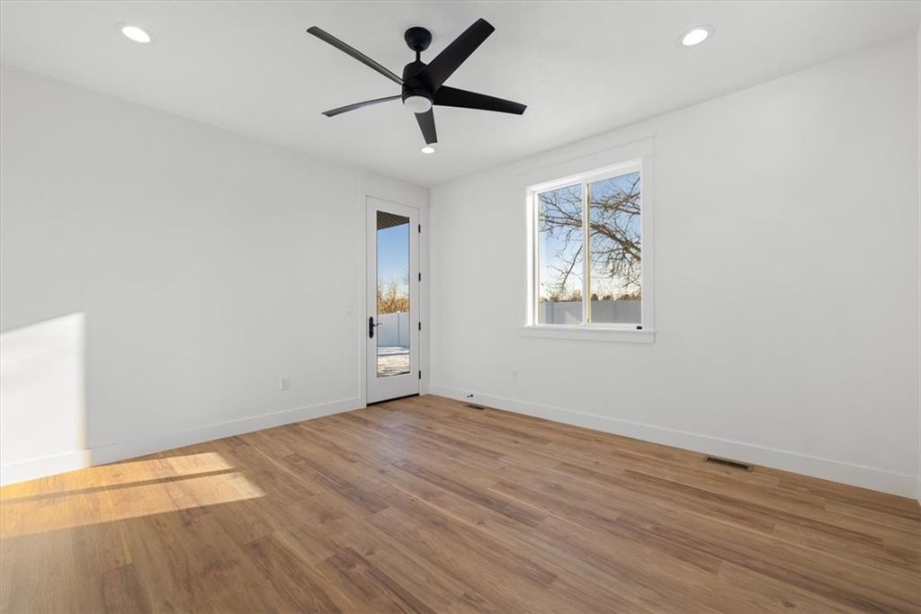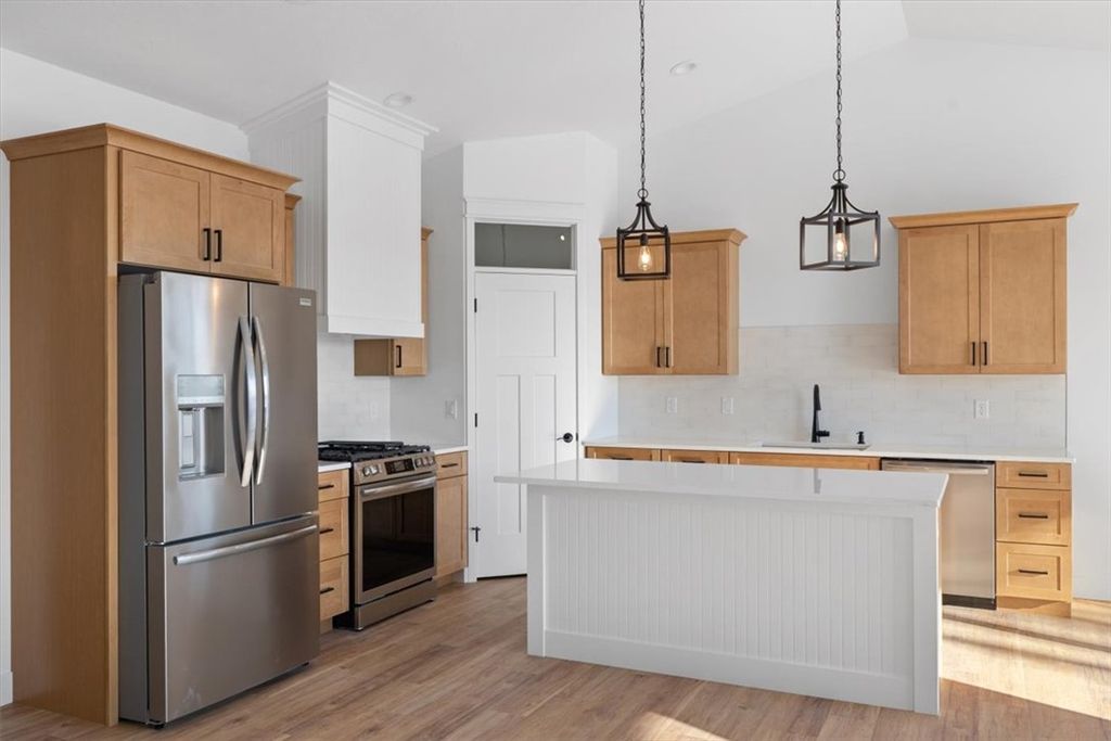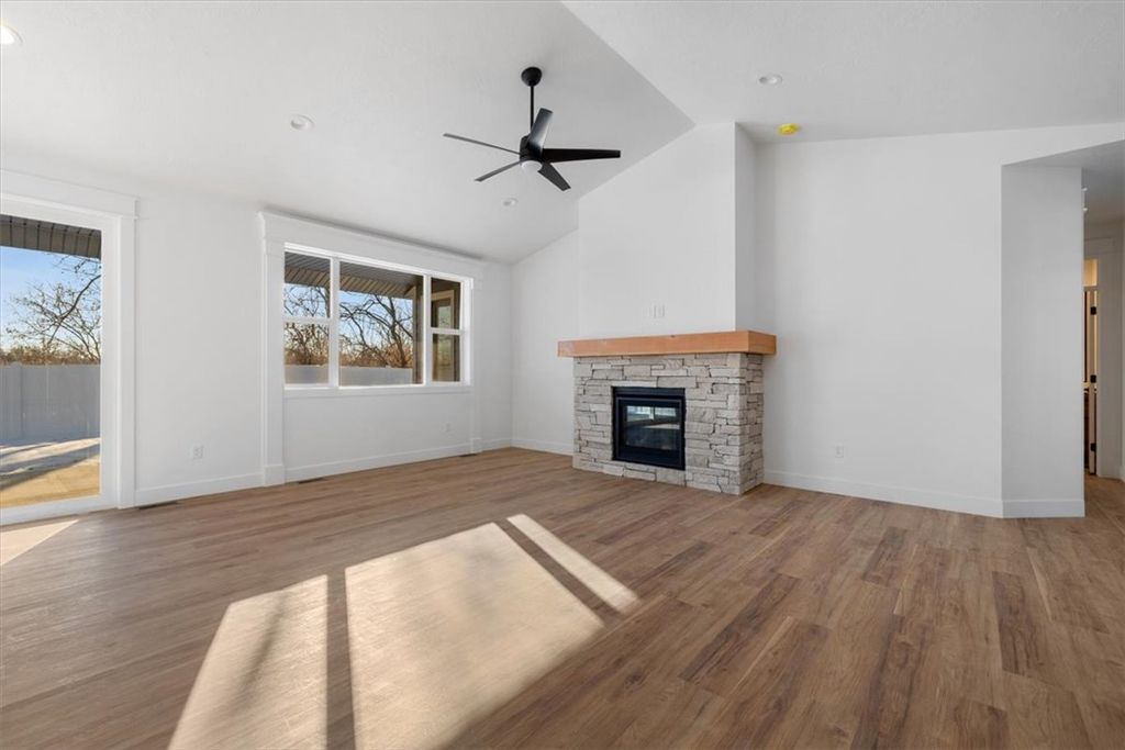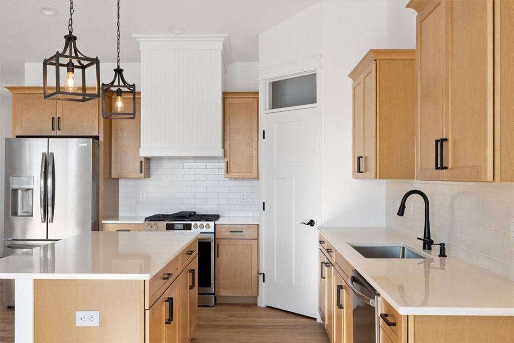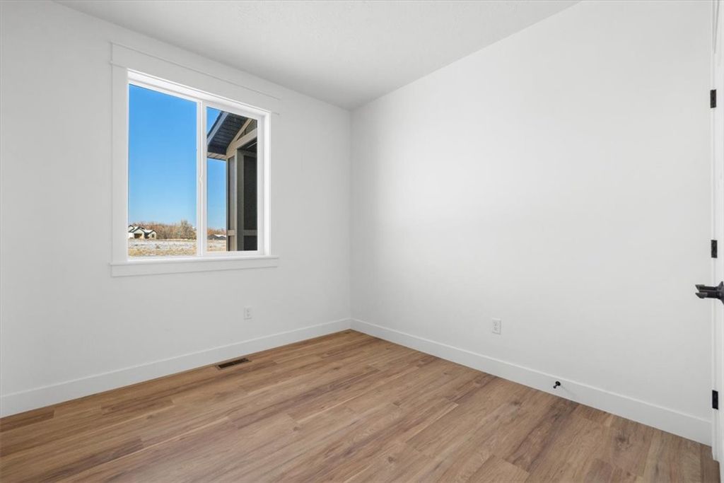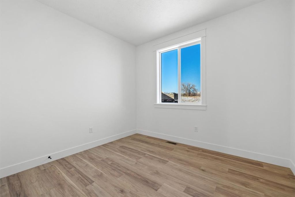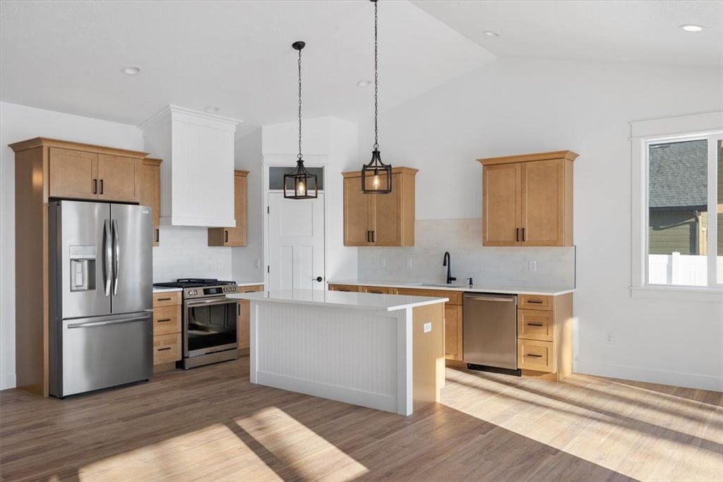 Welcome to this stunning new construction home located in the quiet Bitterroot Heights Subdivision. This 3 bedroom, 2 bath residence offers a well designed layout with a 2 car garage and beautiful finishes throughout. Thoughtful details like custom trim work and cohesive design choices create a polished yet comfortable living space. The kitchen is highlighted by warm wood cabinetry, white hard surface countertops, a tile backsplash, gas range, and custom hood, complemented by modern black hardware for a clean, contemporary look. The primary suite features a bright white tile shower, offering a fresh and relaxing retreat. Step outside to a covered patio overlooking natural open space, providing privacy and a peaceful backyard setting. Bitterroot Heights is known for its calm, out of town atmosphere while still being conveniently close to shopping, dining, and everyday amenities. This move in ready home is ready to welcome its new owners.