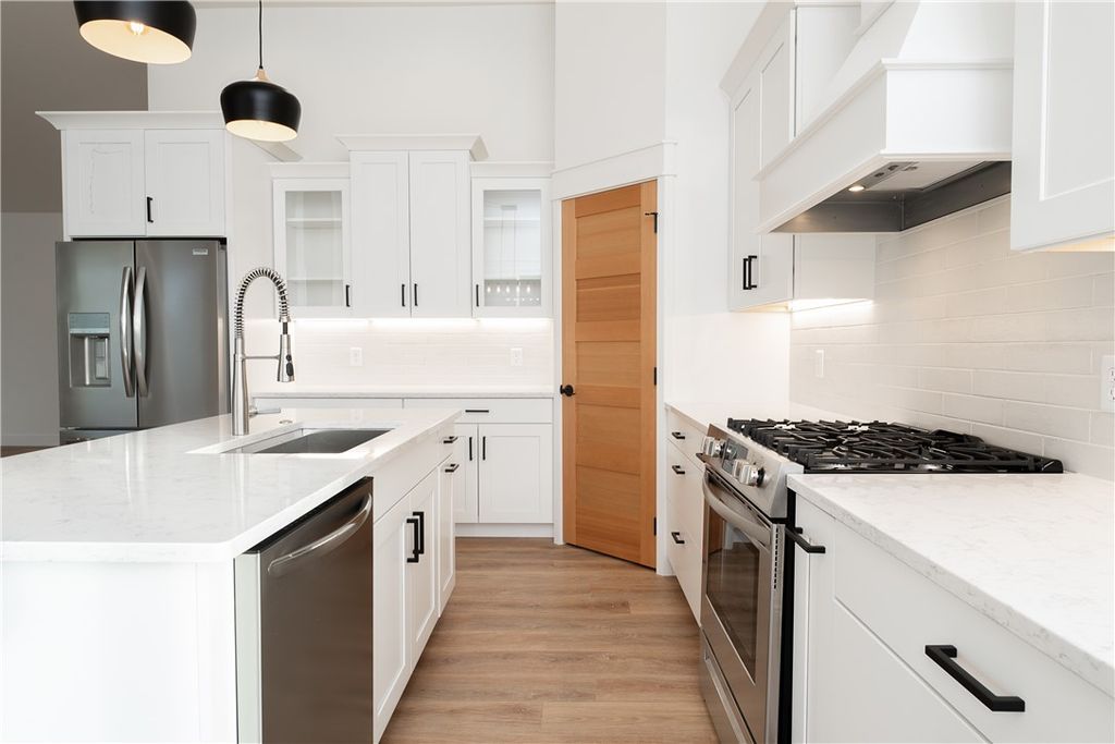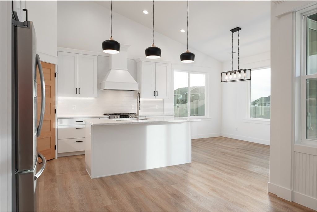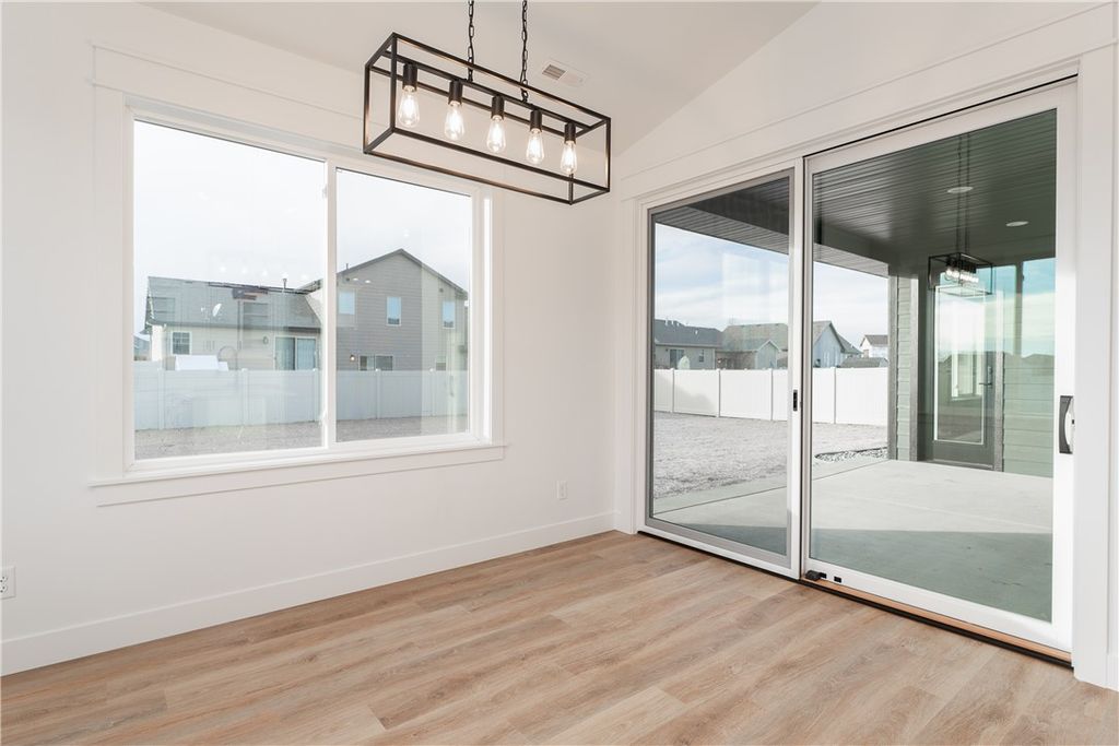 This home features one of the builder's most sought-after floor plans with a spacious main level plus a fully finished bonus room. This 3 bed, 2 bath includes hard-surface countertops throughout, tile in the primary suite, a large kitchen island with gas stove, vaulted ceilings, transom windows, and a rocked fireplace for a high-end, custom feel. Upgraded finishes carry through every room. The 3 car garage offers additional space in the third bay perfect for storing toys or equipment. Outside, enjoy a big covered patio overlooking natural space and a small creek with no rear neighbors. Landscaping and fencing are included. Located in Bitterroot Heights, you get that peaceful 'out of town' feel while still being only five minutes from everyday amenities. This new construction home will be ready for its new owners in November. Other lots and floor plans available. These interior pictures are of a similar home with comparable finishes.
